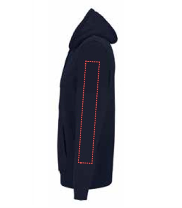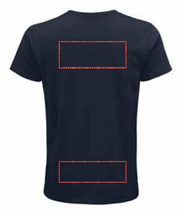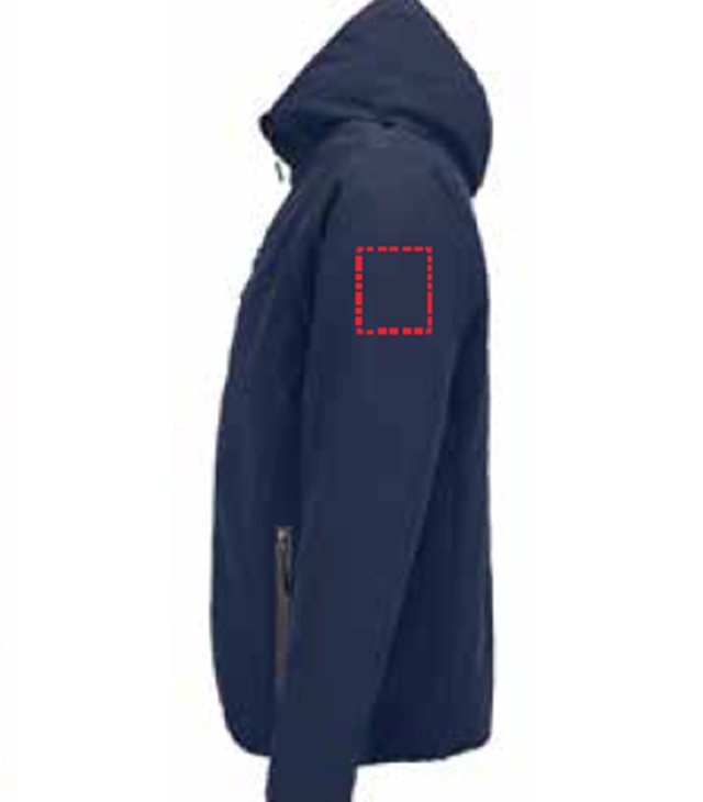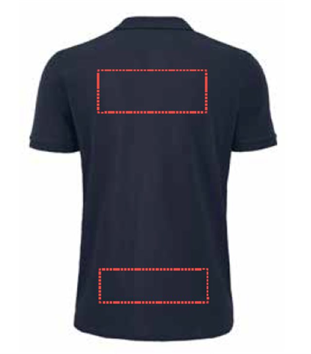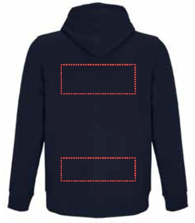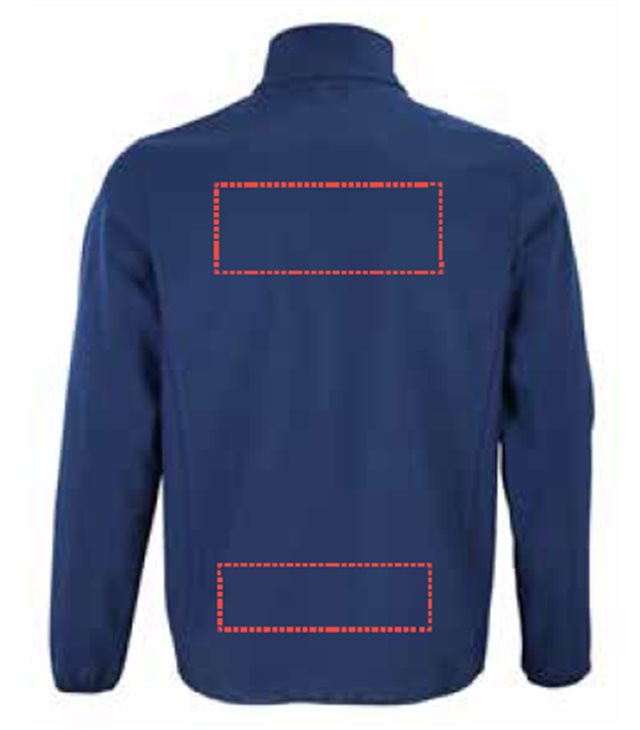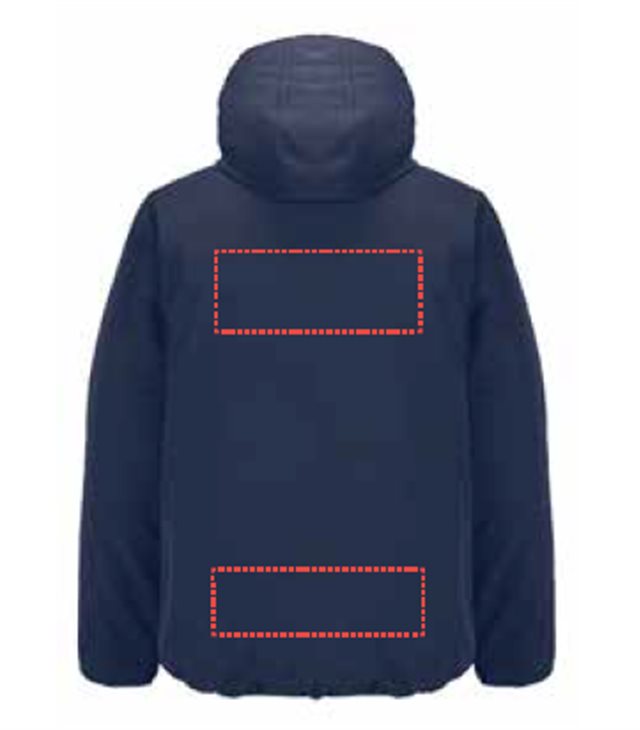 In tutti i capi sono specificate con il tratteggio rosso le aree personalizzabili con proprio logo aziendale.